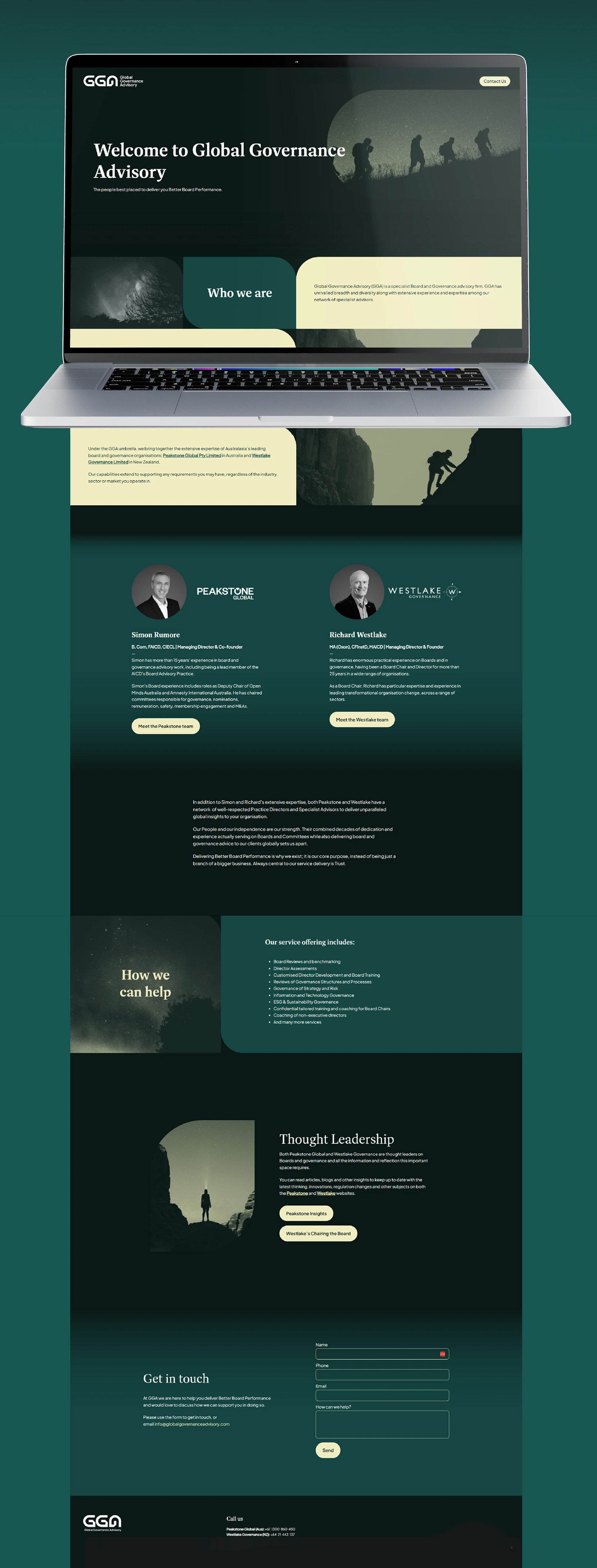 GGA is a new specialist Board and Governance advisory firm that combines the expertise of a New Zealand based team (Westlake) and an Australia based team (Peakstone). As they developed this new business, they needed a preliminary, high-class brochure website that would serve as an introduction to them and their services together.